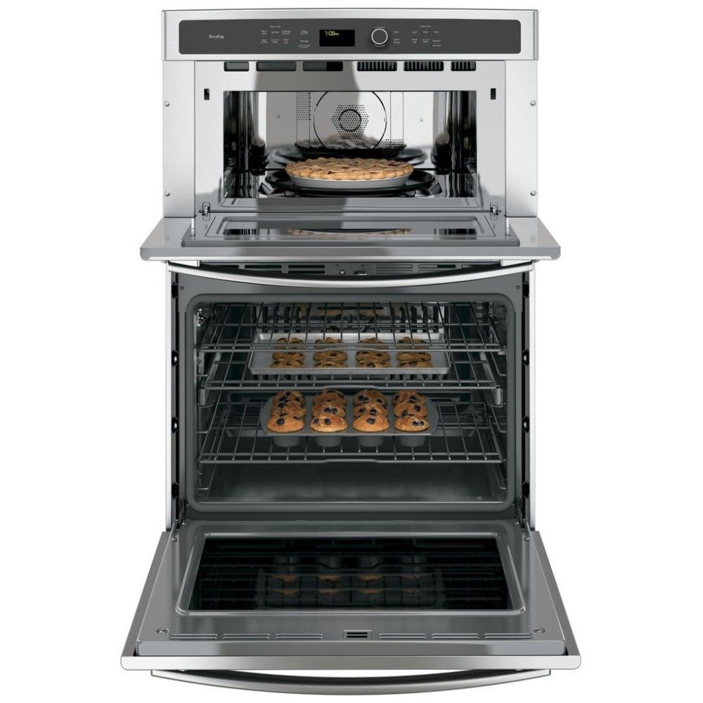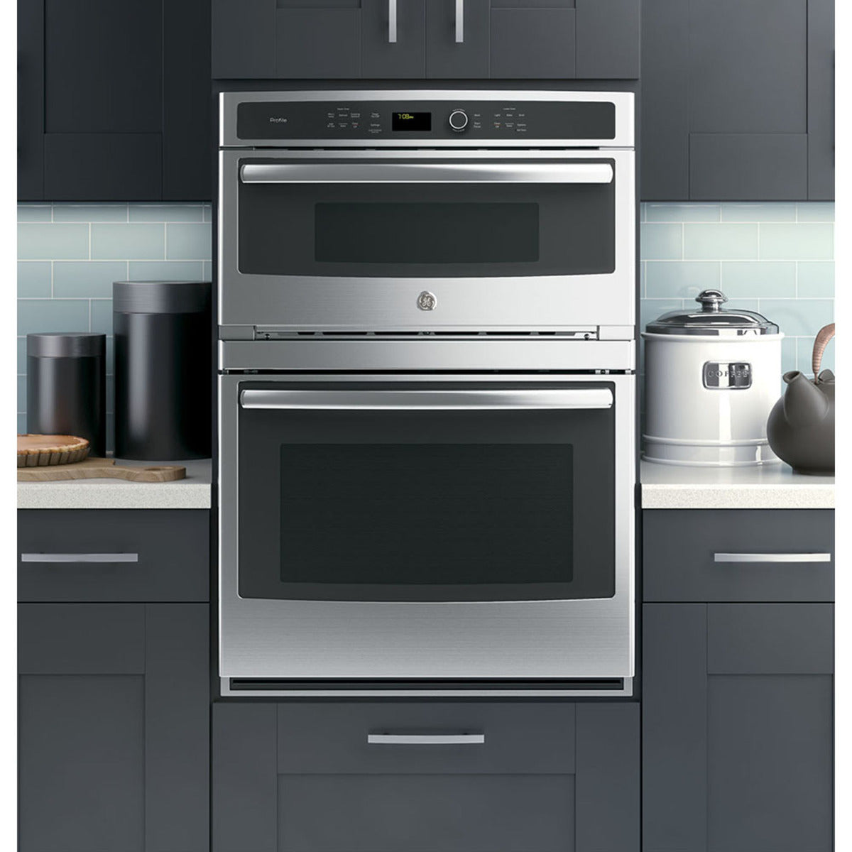 Four micro-ondes/four encastrable GE Profile PT7800SHSS, largeur extérieure de 30 pouces, véritable convection, auto-nettoyant (un four), capacité de 6,7 pi cu, sonde de température, couleur acier inoxydable, véritable convection européenne, grille télescopique coulissante.