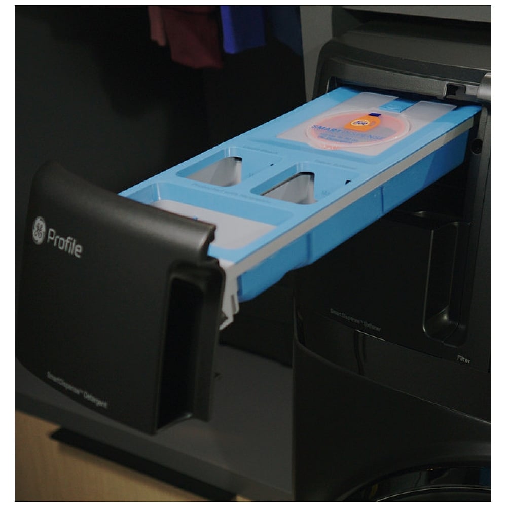 GE Profile PFQ97HSPVDS All-in-One Washer Dryer Combo Electric Dryer, 28 inch Width, 5.5 cu. ft. Washer Capacity, 5.5 cu. ft. Dryer Capacity, Steam Clean, 12 Wash Cycles, 5 Temperature Settings, 1,300 RPM Washer Spin Speed, Wifi Enabled, 14 Dry Cycles, Electric, Carbon Graphite colour Eco Cool™ Cycle, ADA Compliant, EZ Access Lint Filter, SmartDispense™ Technology, Dynamic Balancing Technology.