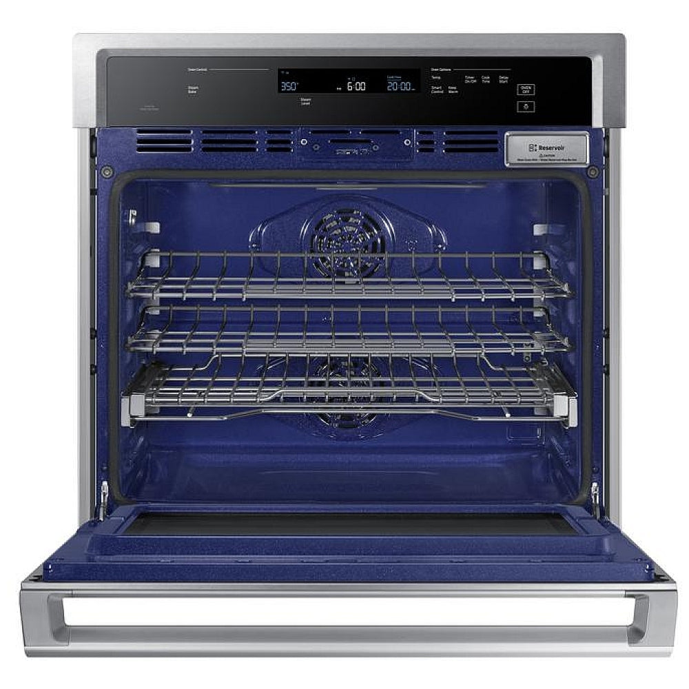 Samsung NV51K6650SS - NV51K6650SS/AA Single Wall Oven, 30 inch Exterior Width, Convection, Self Clean, 5.1 cu. ft. Capacity, Temperature Probe, Wifi Enabled, Stainless Steel colour True European Convection, Steam, Telescopic Gliding Extension Rack.